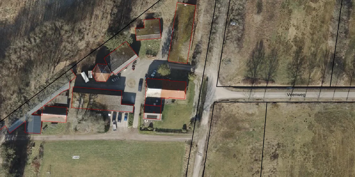 Het perceel waarop Veenweg 9 staat heeft een oppervlakte van 2,1 ha. Dit is een zeer groot perceel. De perceeloppervlakte wordt geregistreerd door het Kadaster. Gedetailleerde informatie over de maten van dit perceel kunt u vinden in het rapport Kadastrale kaart met maatvoering van Veenweg 9.