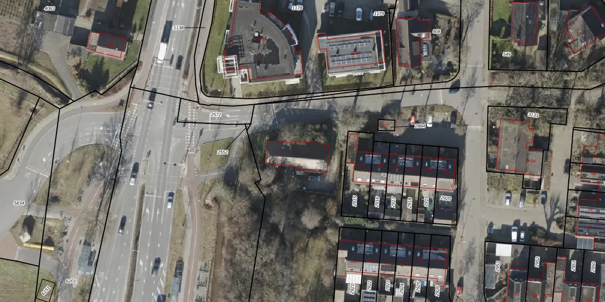 Gebruik de zoekbalk of klik op een perceel voor informatie over de adressen binnen dit perceel.