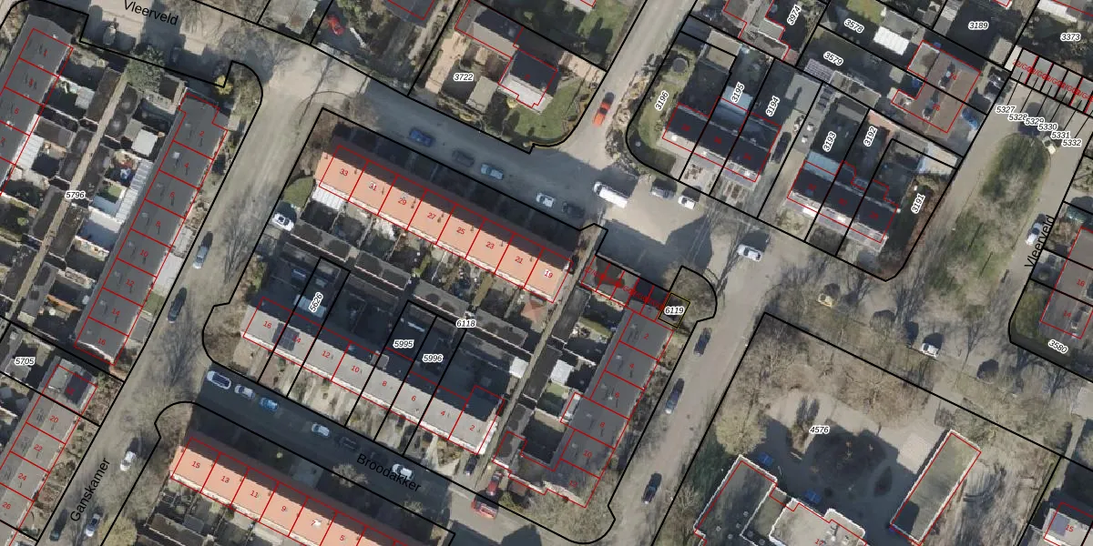 Het perceel waarop Vleerveld 19 staat heeft een oppervlakte van 3548 m². Dit is een zeer groot perceel. De perceeloppervlakte wordt geregistreerd door het Kadaster. Gedetailleerde informatie over de maten van dit perceel kunt u vinden in het rapport Kadastrale kaart met maatvoering van Vleerveld 19.
