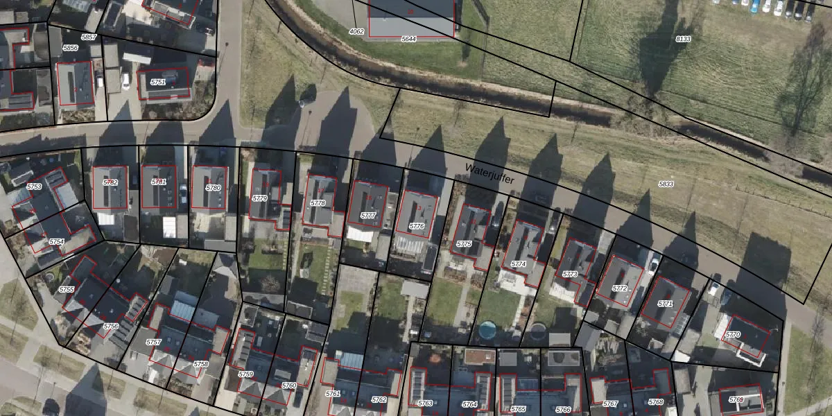 Het perceel waarop Waterjuffer 13 staat heeft een oppervlakte van 301 m². Dit is een groot perceel. De perceeloppervlakte wordt geregistreerd door het Kadaster. Gedetailleerde informatie over de maten van dit perceel kunt u vinden in het rapport Kadastrale kaart met maatvoering van Waterjuffer 13.