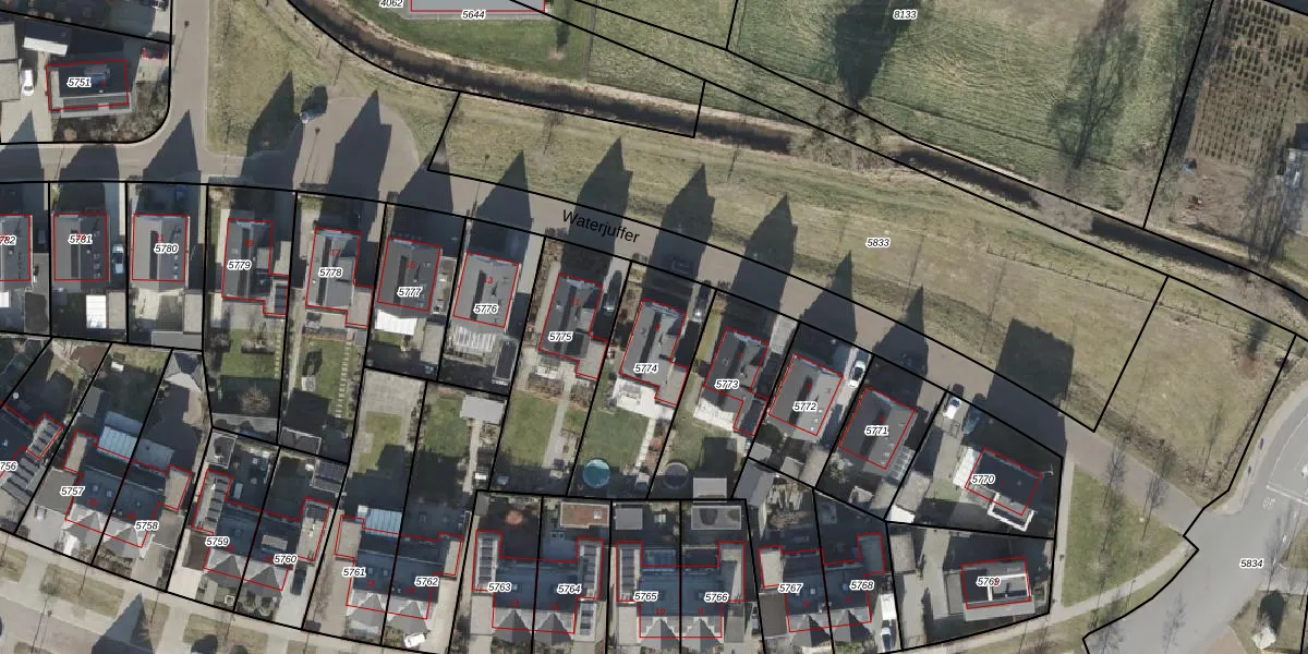 Het perceel waarop Waterjuffer 9 staat heeft een oppervlakte van 459 m². Dit is een groot perceel. De perceeloppervlakte wordt geregistreerd door het Kadaster. Gedetailleerde informatie over de maten van dit perceel kunt u vinden in het rapport Kadastrale kaart met maatvoering van Waterjuffer 9.