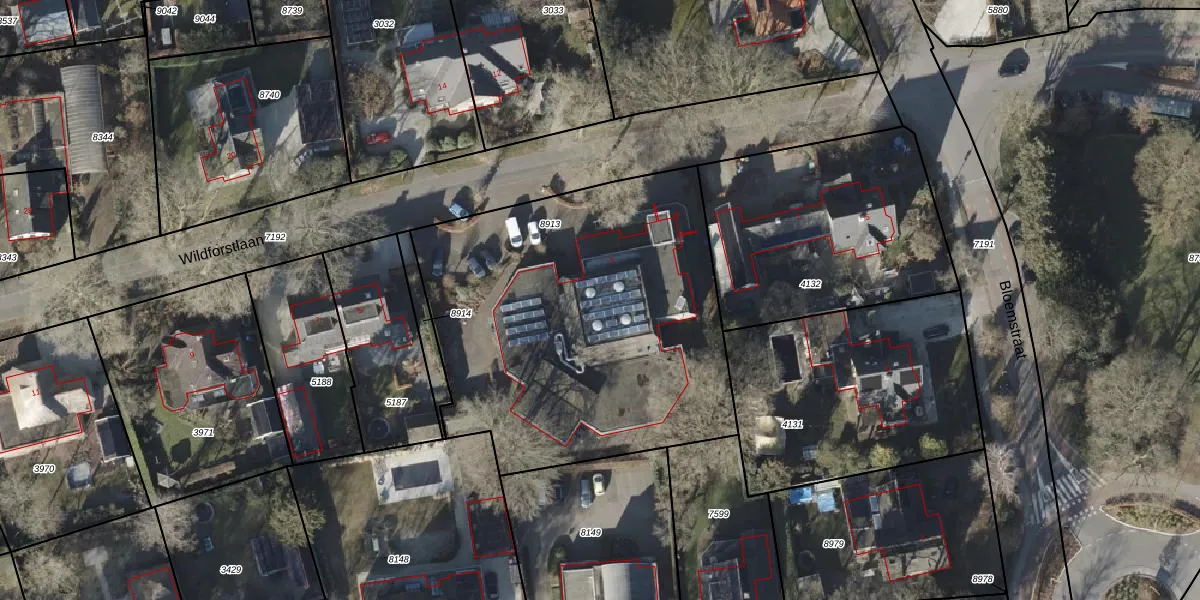 Gebruik de zoekbalk of klik op een perceel voor informatie over de adressen binnen dit perceel.