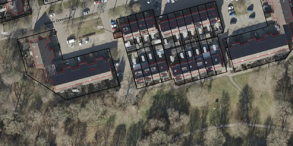 Gebruik de zoekbalk of klik op een perceel voor informatie over de adressen binnen dit perceel.