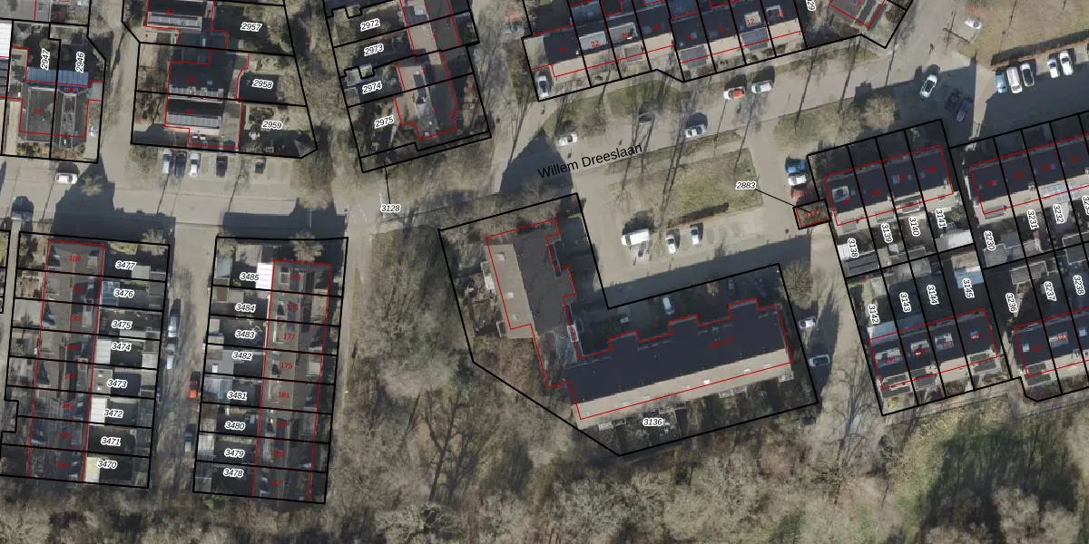 Het perceel waarop Willem Dreeslaan 149 staat heeft een oppervlakte van 1885 m². Dit is een zeer groot perceel. De perceeloppervlakte wordt geregistreerd door het Kadaster. Gedetailleerde informatie over de maten van dit perceel kunt u vinden in het rapport Kadastrale kaart met maatvoering van Willem Dreeslaan 149.