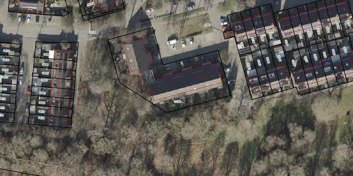 Het perceel waarop Willem Dreeslaan 161 staat heeft een oppervlakte van 1885 m². Dit is een zeer groot perceel. De perceeloppervlakte wordt geregistreerd door het Kadaster. Gedetailleerde informatie over de maten van dit perceel kunt u vinden in het rapport Kadastrale kaart met maatvoering van Willem Dreeslaan 161.