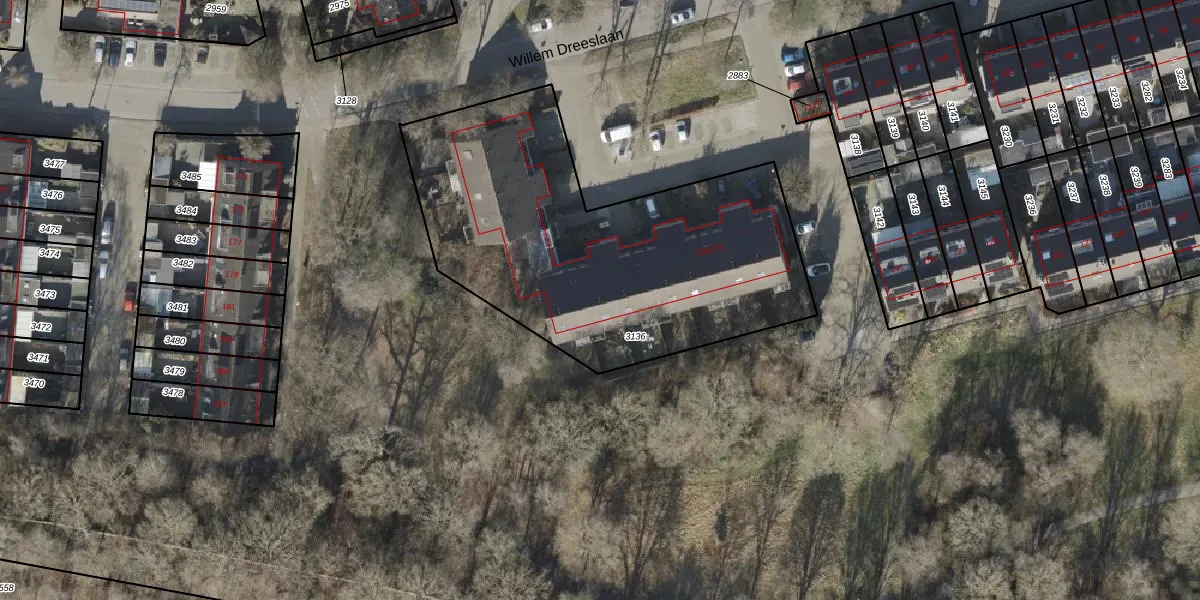 Het perceel waarop Willem Dreeslaan 163 staat heeft een oppervlakte van 1885 m². Dit is een zeer groot perceel. De perceeloppervlakte wordt geregistreerd door het Kadaster. Gedetailleerde informatie over de maten van dit perceel kunt u vinden in het rapport Kadastrale kaart met maatvoering van Willem Dreeslaan 163.