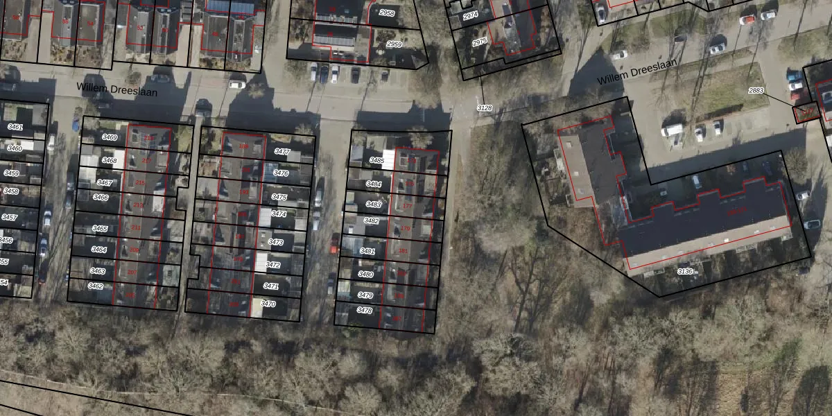 Gebruik de zoekbalk of klik op een perceel voor informatie over de adressen binnen dit perceel.