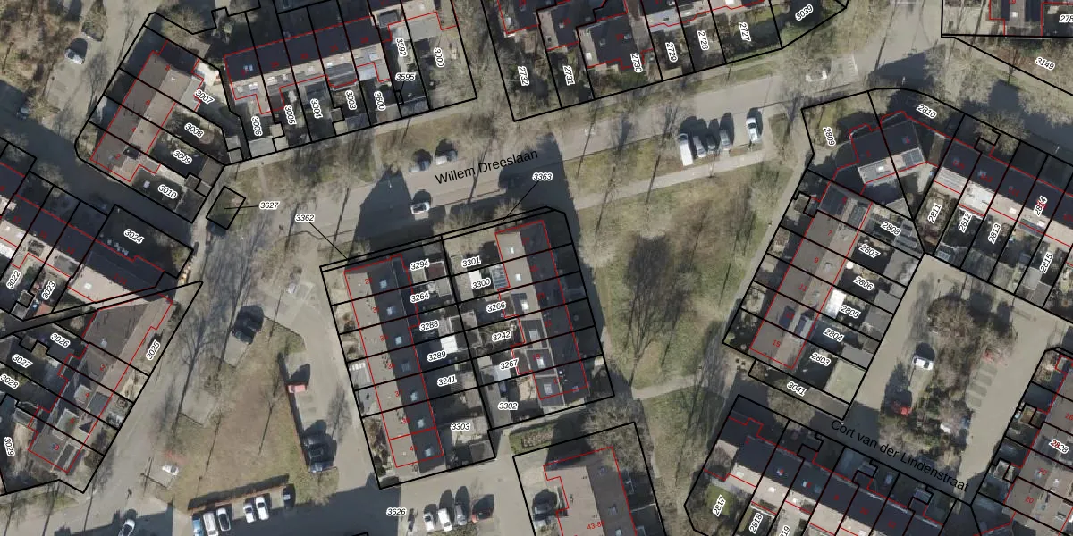 Gebruik de zoekbalk of klik op een perceel voor informatie over de adressen binnen dit perceel.