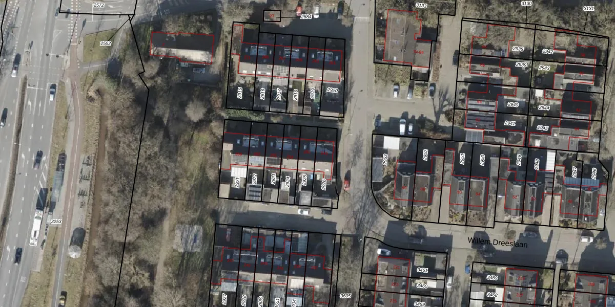 Gebruik de zoekbalk of klik op een perceel voor informatie over de adressen binnen dit perceel.