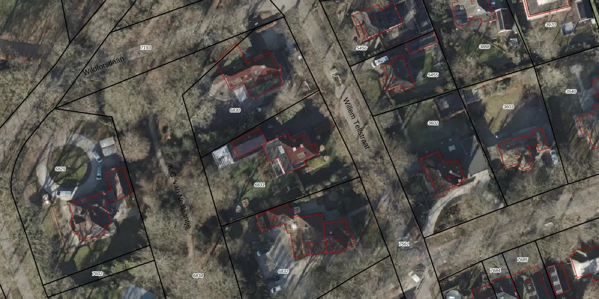 Het perceel waarop Willem Tellstraat 19 staat heeft een oppervlakte van 1315 m². Dit is een zeer groot perceel. De perceeloppervlakte wordt geregistreerd door het Kadaster. Gedetailleerde informatie over de maten van dit perceel kunt u vinden in het rapport Kadastrale kaart met maatvoering van Willem Tellstraat 19.