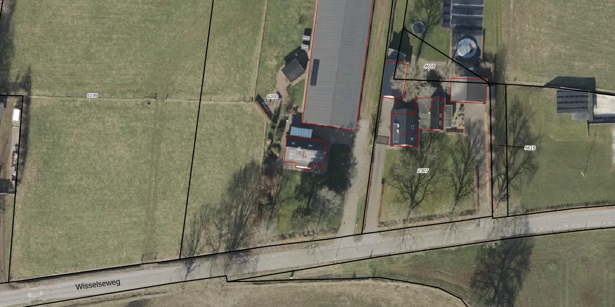 Wisselseweg 14 is gelegen op kadastraal perceel EPE00T6200. Deze kadastrale aanduiding is uniek en wordt gebruikt door het Kadaster om eigendomsrechten en andere zakelijke rechten vast te leggen. Het perceel maakt onderdeel uit van de kadastrale gemeente Epe en Oene.