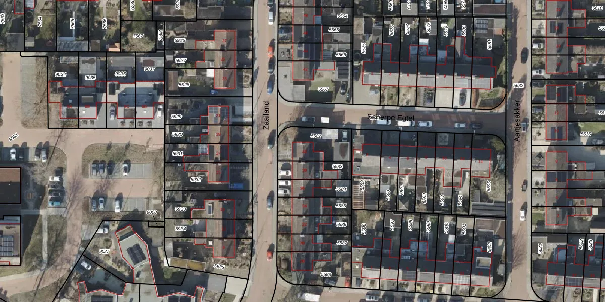 Gebruik de zoekbalk of klik op een perceel voor informatie over de adressen binnen dit perceel.