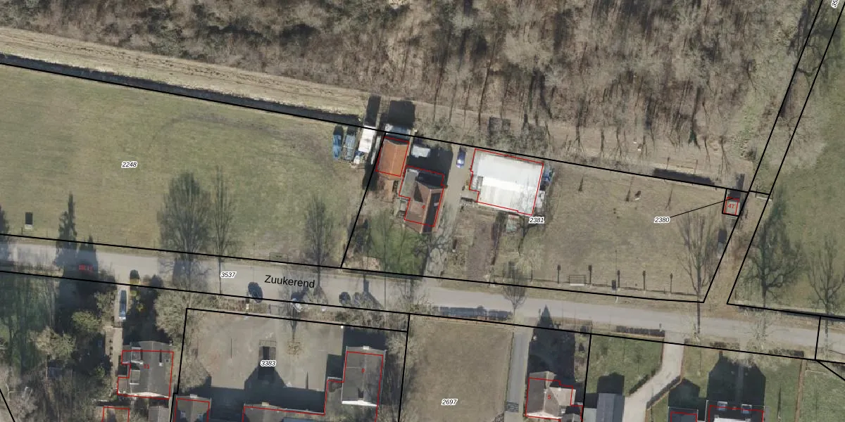 Het perceel waarop Zuukerend 4 staat heeft een oppervlakte van 2561 m². Dit is een zeer groot perceel. De perceeloppervlakte wordt geregistreerd door het Kadaster. Gedetailleerde informatie over de maten van dit perceel kunt u vinden in het rapport Kadastrale kaart met maatvoering van Zuukerend 4.