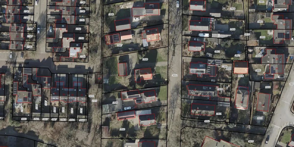 Gebruik de zoekbalk of klik op een perceel voor informatie over de adressen binnen dit perceel.