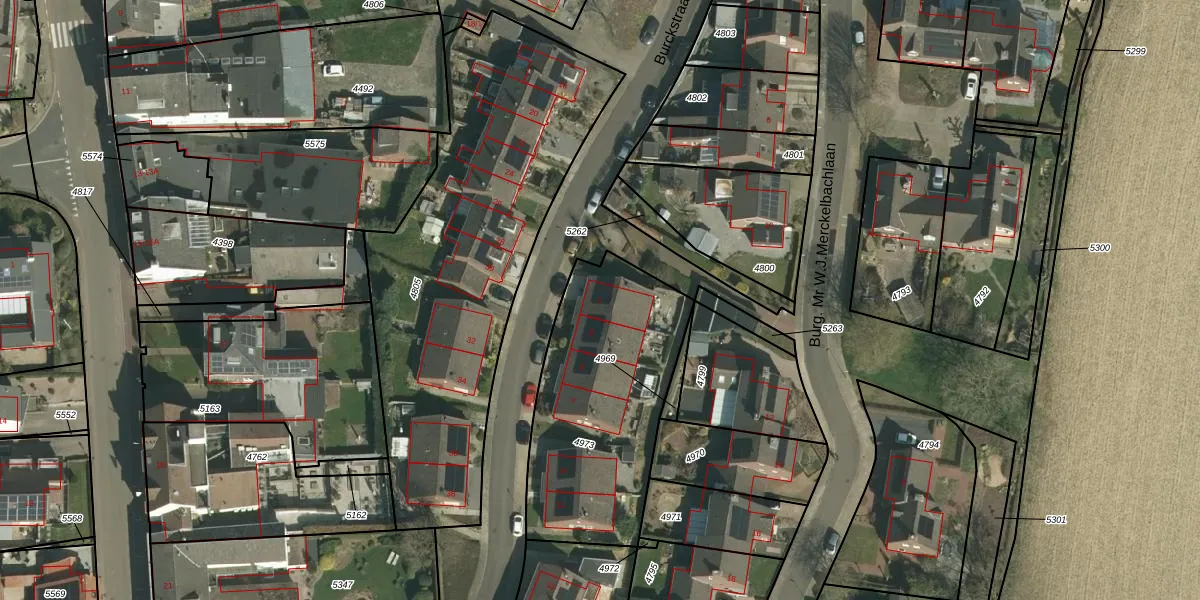 Burckstraat 1 is gelegen op kadastraal perceel WTM00D4973. Deze kadastrale aanduiding is uniek en wordt gebruikt door het Kadaster om eigendomsrechten en andere zakelijke rechten vast te leggen. Het perceel maakt onderdeel uit van de kadastrale gemeente Wittem.