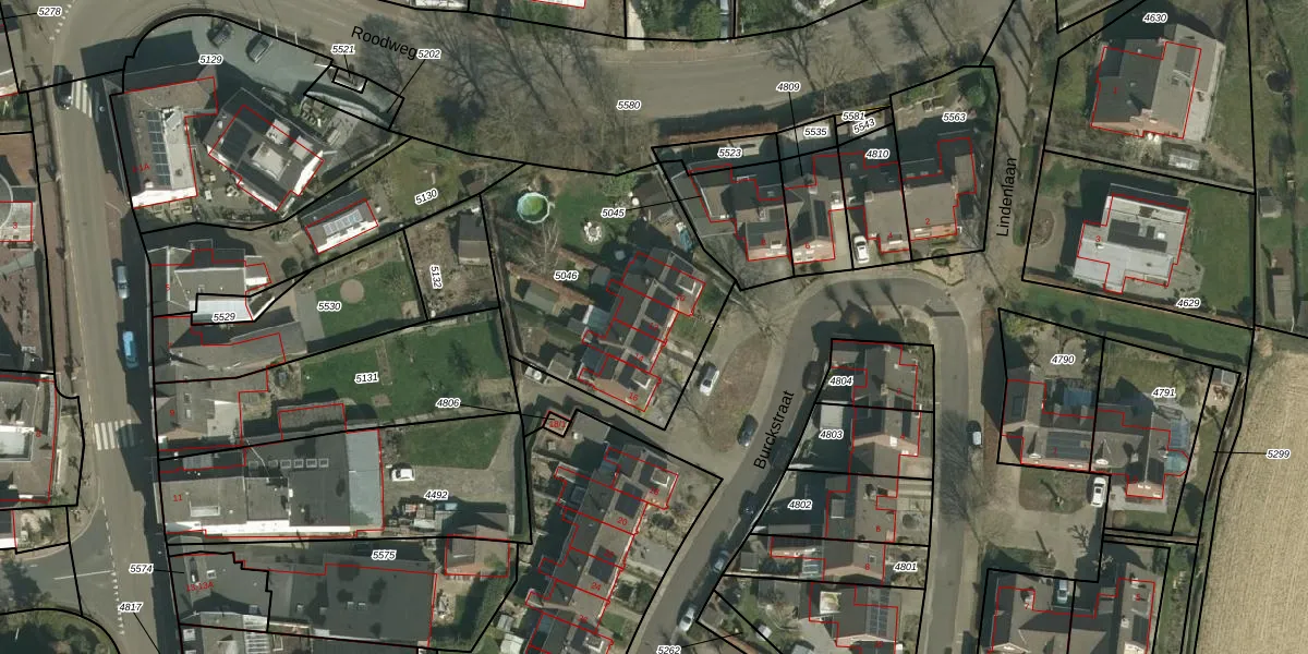 Het perceel waarop Burckstraat 12 staat heeft een oppervlakte van 1040 m². Dit is een zeer groot perceel. De perceeloppervlakte wordt geregistreerd door het Kadaster. Gedetailleerde informatie over de maten van dit perceel kunt u vinden in het rapport Kadastrale kaart met maatvoering van Burckstraat 12.