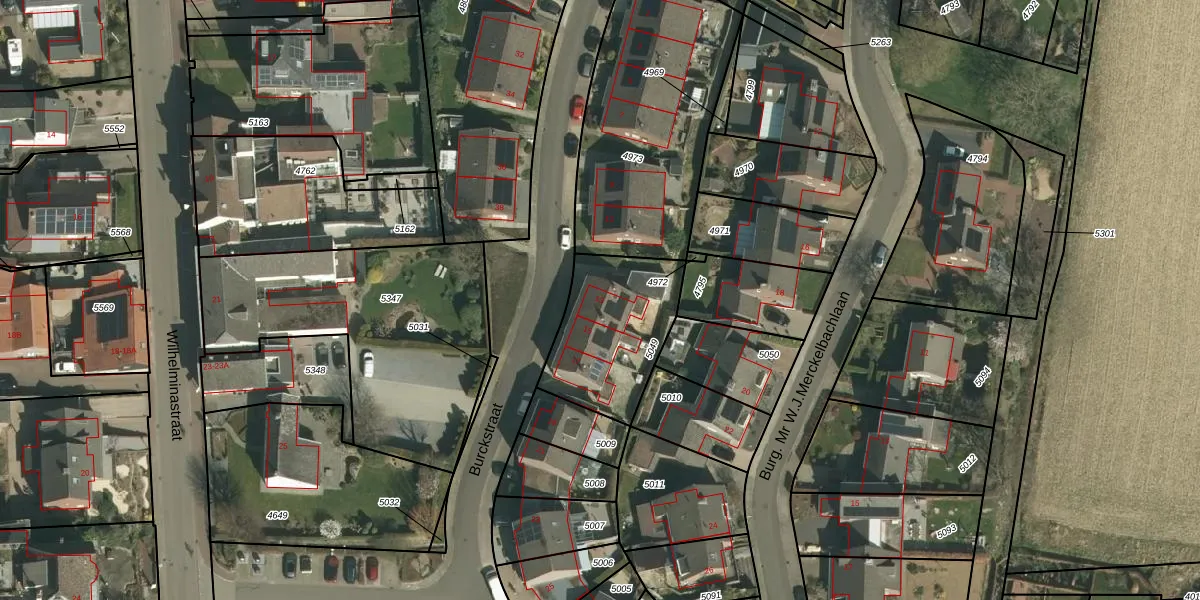 Burckstraat 13 is gelegen op kadastraal perceel WTM00D5049. Deze kadastrale aanduiding is uniek en wordt gebruikt door het Kadaster om eigendomsrechten en andere zakelijke rechten vast te leggen. Het perceel maakt onderdeel uit van de kadastrale gemeente Wittem.
