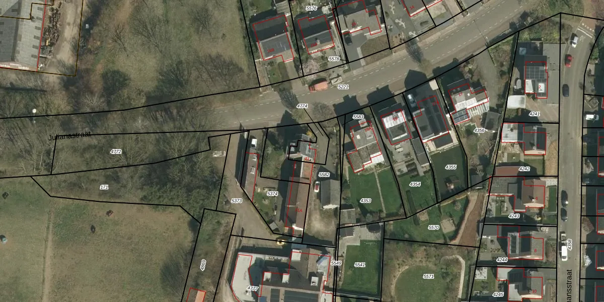 Julianastraat 19-B is gelegen op kadastraal perceel WTM00D4774. Deze kadastrale aanduiding is uniek en wordt gebruikt door het Kadaster om eigendomsrechten en andere zakelijke rechten vast te leggen. Het perceel maakt onderdeel uit van de kadastrale gemeente Wittem.