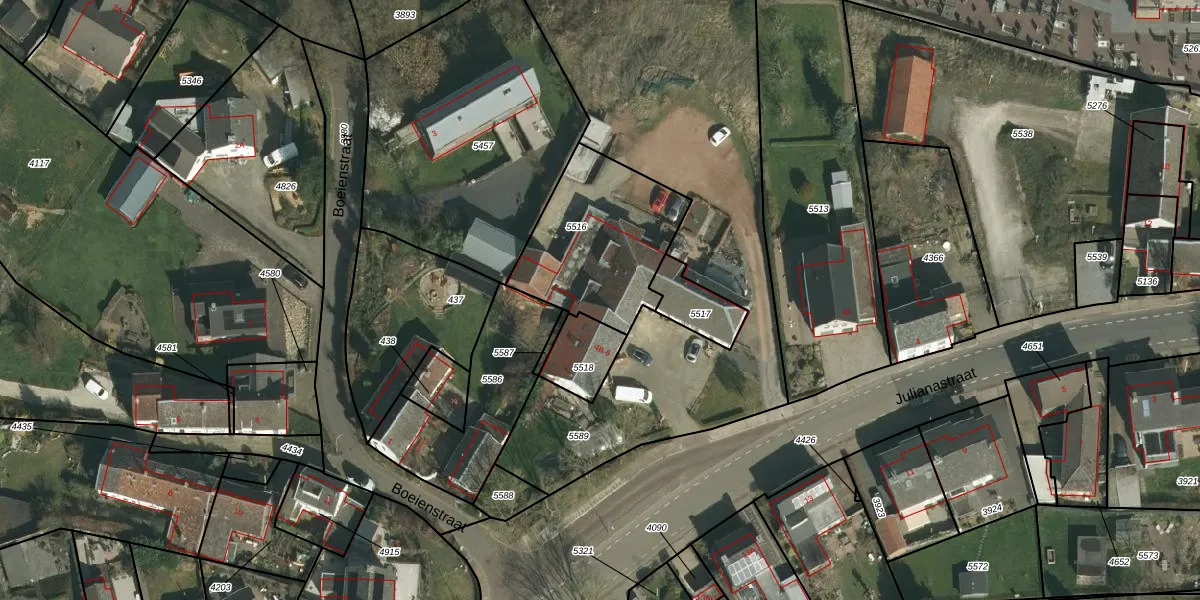 Julianastraat 4-F is gelegen op kadastraal perceel WTM00D5516. Deze kadastrale aanduiding is uniek en wordt gebruikt door het Kadaster om eigendomsrechten en andere zakelijke rechten vast te leggen. Het perceel maakt onderdeel uit van de kadastrale gemeente Wittem.