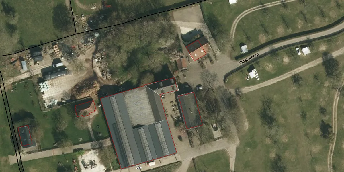 Het perceel waarop Oosterberg 2 staat heeft een oppervlakte van 3,0 ha. Dit is een zeer groot perceel. De perceeloppervlakte wordt geregistreerd door het Kadaster. Gedetailleerde informatie over de maten van dit perceel kunt u vinden in het rapport Kadastrale kaart met maatvoering van Oosterberg 2.