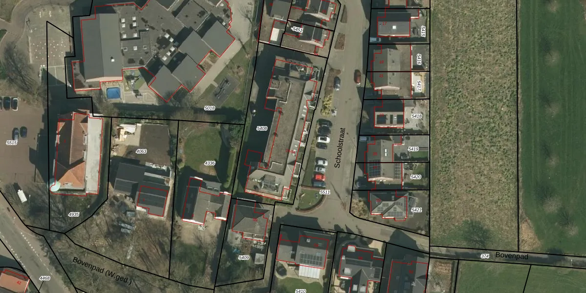 Schoolstraat 36 is gelegen op kadastraal perceel WTM00D5408. Deze kadastrale aanduiding is uniek en wordt gebruikt door het Kadaster om eigendomsrechten en andere zakelijke rechten vast te leggen. Het perceel maakt onderdeel uit van de kadastrale gemeente Wittem.