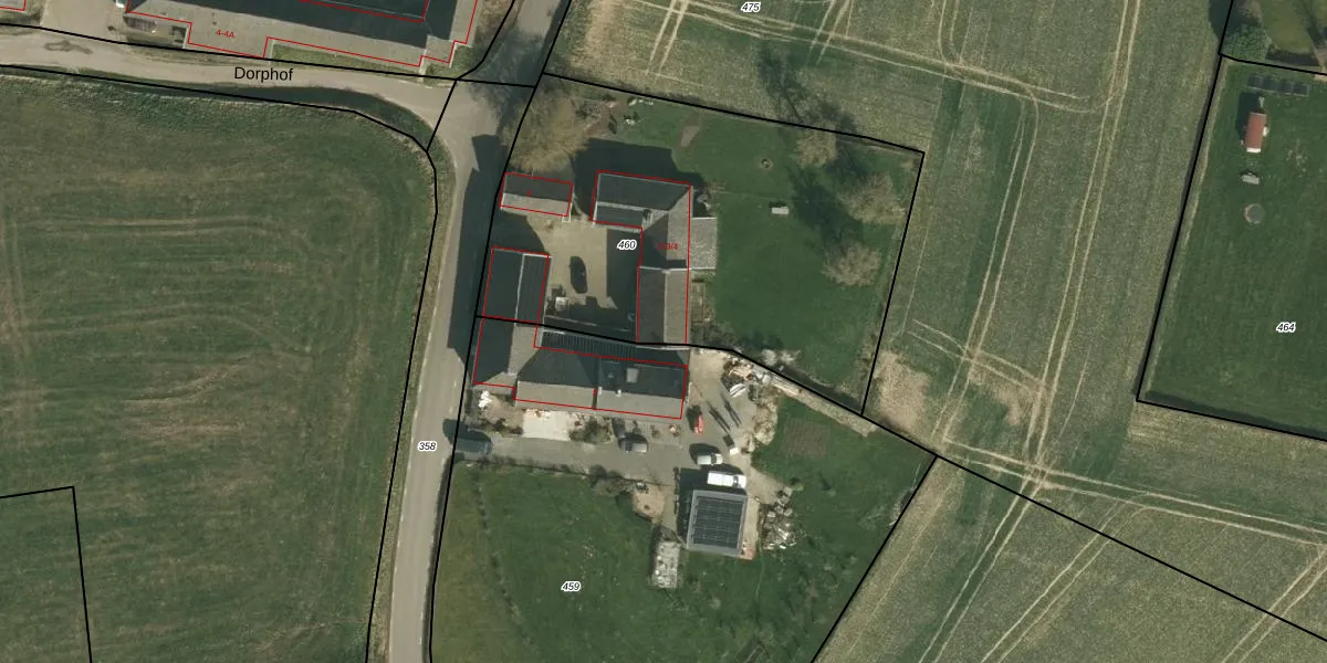 Het adres ligt op het perceel WTM00-K-460, dat zich in de kadastrale gemeente Wittem bevindt. Het perceel is kleiner dan gemiddeld in Wittem. Het perceel is 2390 m² groot, terwijl het gemiddelde ligt op 6054,62 m². Het grootste perceel in de kadastrale gemeente is 50,8 ha. Het kleinste perceel heeft een oppervlakte van 0 m². Op het perceel liggen in totaal 5 adressen. De laatste wijziging in het de Basisregistratie Kadaster (BRK) was op 09-09-2010.