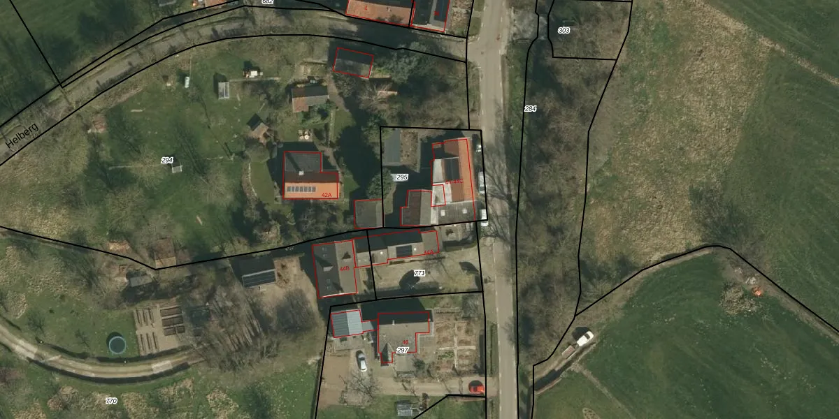 Het adres ligt op het perceel WTM00-K-295, dat zich in de kadastrale gemeente Wittem bevindt. Het perceel is kleiner dan gemiddeld in Wittem. Het perceel is 565 m² groot, terwijl het gemiddelde ligt op 6053 m². De grootste perceeloppervlakte in de kadastrale gemeente is 50,8 ha. De kleinste oppervlakte bedraagt 0 m². Op het perceel zijn 2 adressen aanwezig. De huidige grenzen van het perceel zijn digitaal in de Basisregistratie Kadaster (BRK) geregistreerd op 09-09-2010.