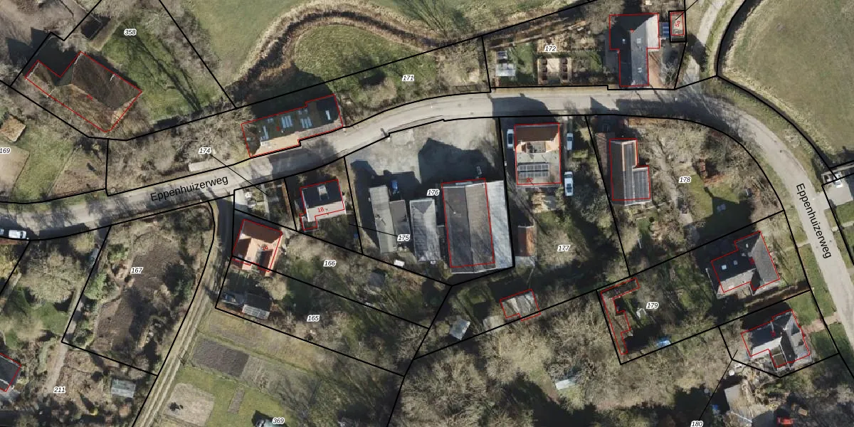 Het perceel waarop Eppenhuizerweg 20 staat heeft een oppervlakte van 1219 m². Dit is een zeer groot perceel. De perceeloppervlakte wordt geregistreerd door het Kadaster. Gedetailleerde informatie over de maten van dit perceel kunt u vinden in het rapport Kadastrale kaart met maatvoering van Eppenhuizerweg 20.