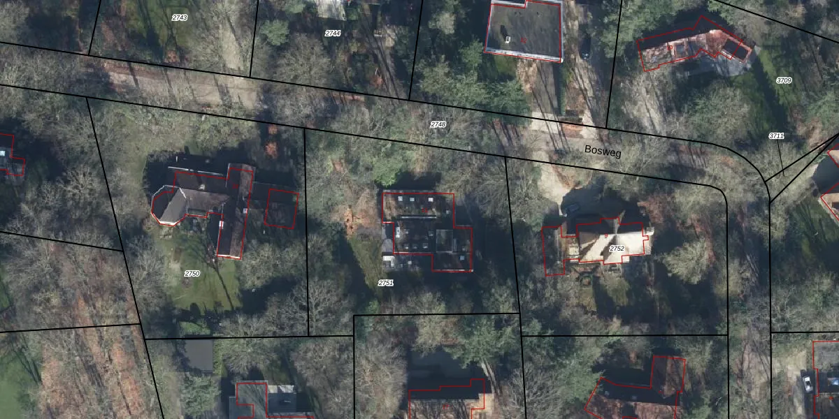 Gebruik de zoekbalk of klik op een perceel voor informatie over de adressen binnen dit perceel.