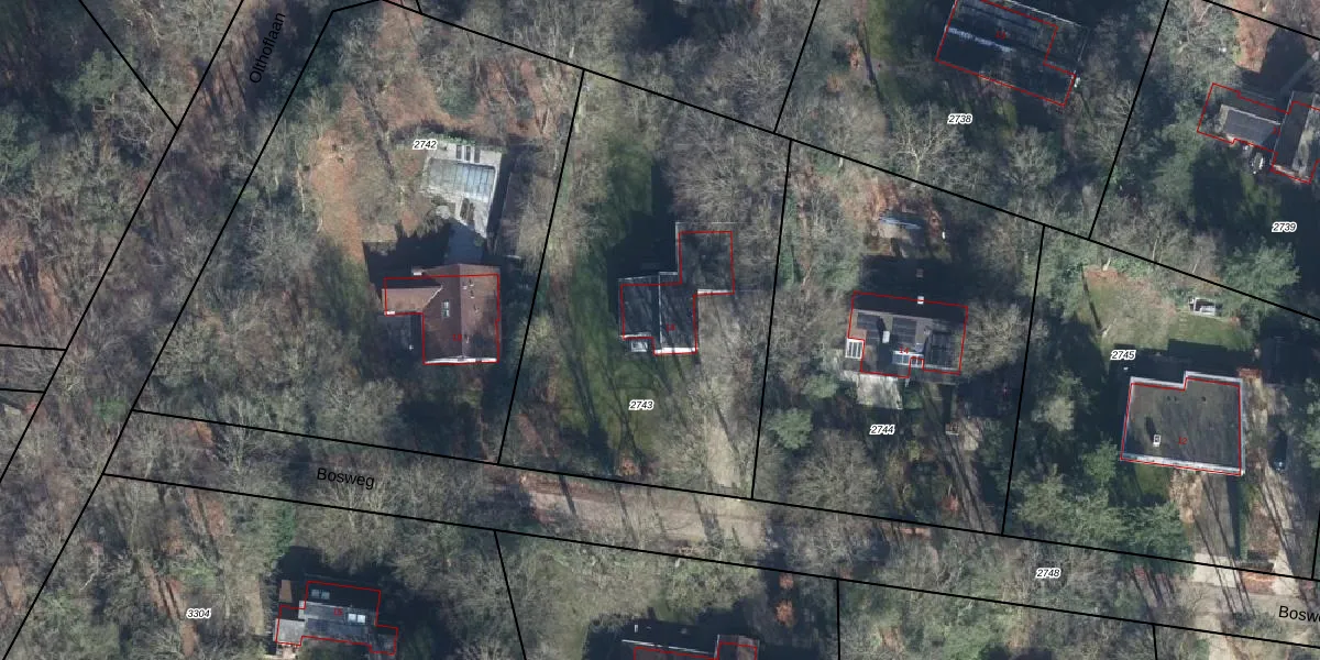 Het perceel waarop Bosweg 16 staat heeft een oppervlakte van 2040 m². Dit is een zeer groot perceel. De perceeloppervlakte wordt geregistreerd door het Kadaster. Gedetailleerde informatie over de maten van dit perceel kunt u vinden in het rapport Kadastrale kaart met maatvoering van Bosweg 16.