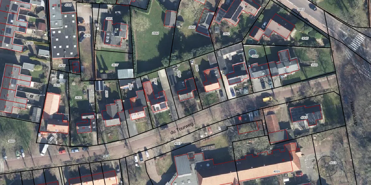 Gebruik de zoekbalk of klik op een perceel voor informatie over de adressen binnen dit perceel.
