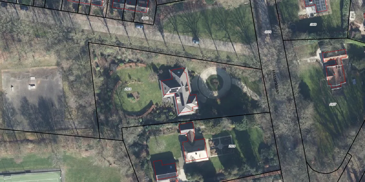 Het perceel waarop Hassinklaan 11 staat heeft een oppervlakte van 3475 m². Dit is een zeer groot perceel. De perceeloppervlakte wordt geregistreerd door het Kadaster. Gedetailleerde informatie over de maten van dit perceel kunt u vinden in het rapport Kadastrale kaart met maatvoering van Hassinklaan 11.