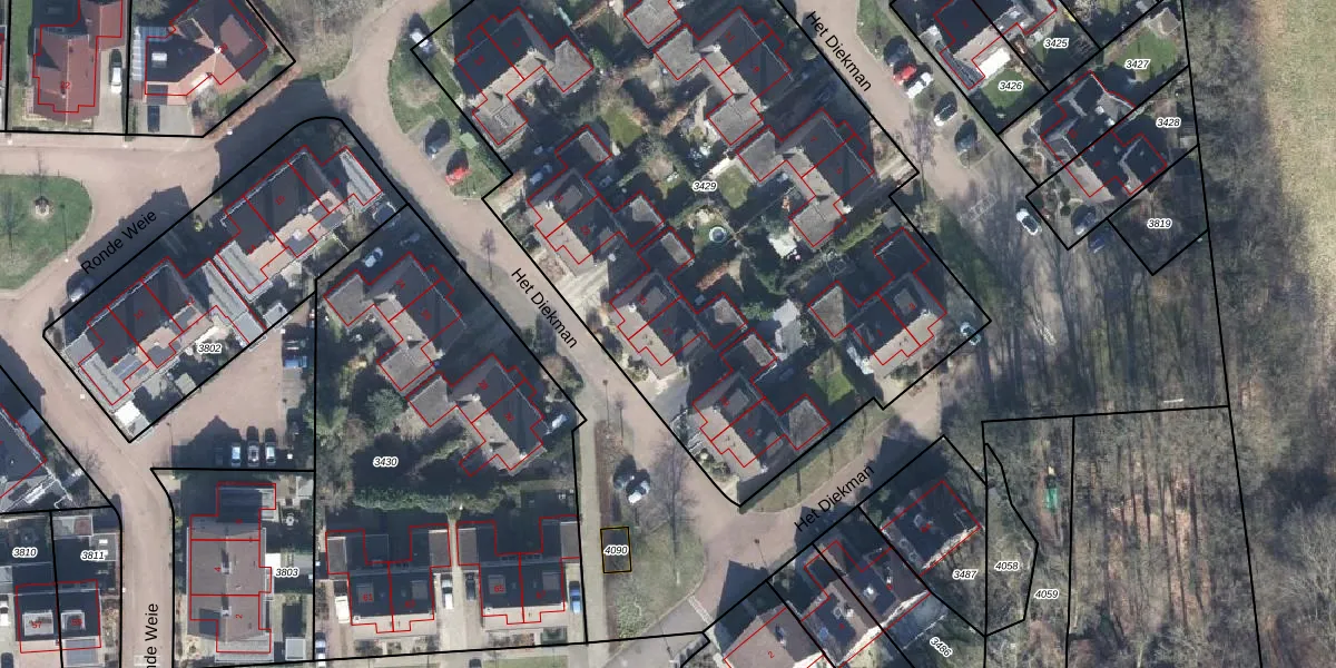 Het perceel waarop Het Diekman 27 staat heeft een oppervlakte van 4177 m². Dit is een zeer groot perceel. De perceeloppervlakte wordt geregistreerd door het Kadaster. Gedetailleerde informatie over de maten van dit perceel kunt u vinden in het rapport Kadastrale kaart met maatvoering van Het Diekman 27.