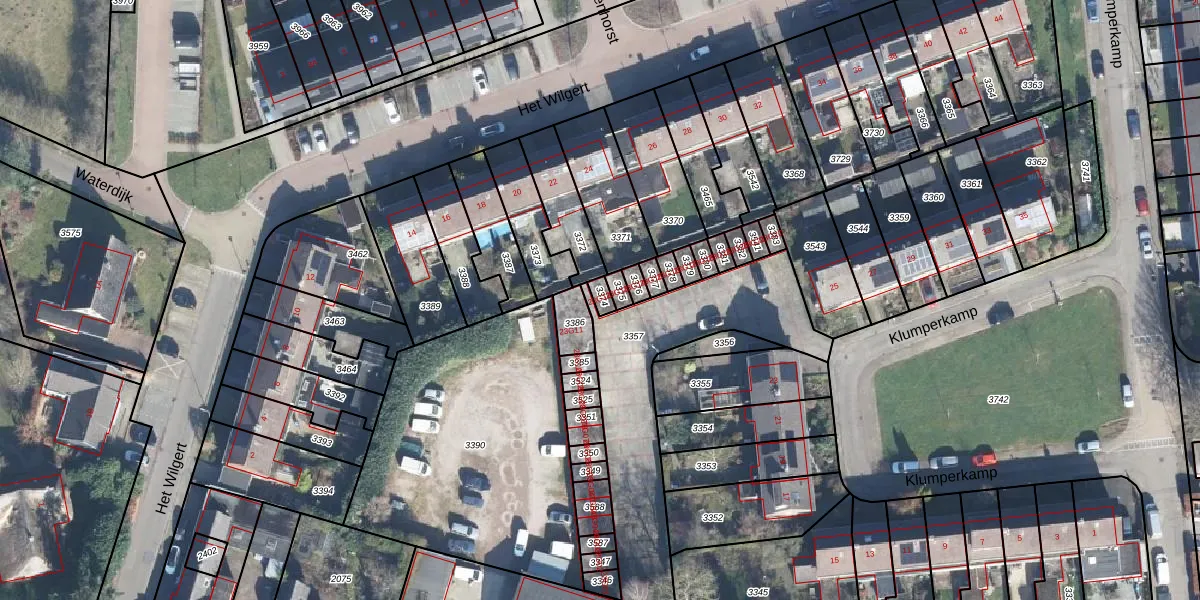 Gebruik de zoekbalk of klik op een perceel voor informatie over de adressen binnen dit perceel.