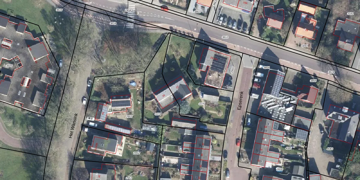Gebruik de zoekbalk of klik op een perceel voor informatie over de adressen binnen dit perceel.
