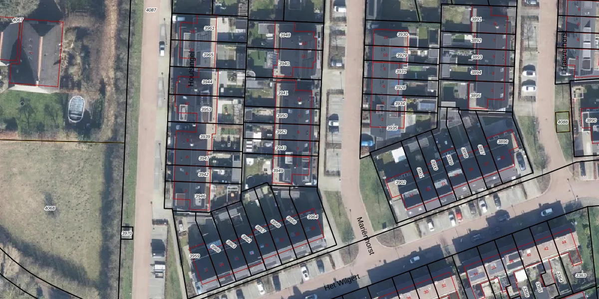 Gebruik de zoekbalk of klik op een perceel voor informatie over de adressen binnen dit perceel.