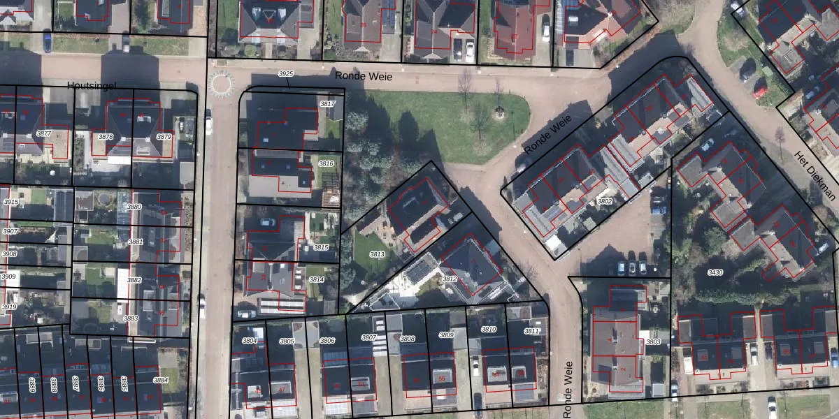 Het perceel waarop Ronde Weie 3 staat heeft een oppervlakte van 538 m². Dit is een groot perceel. De perceeloppervlakte wordt geregistreerd door het Kadaster. Gedetailleerde informatie over de maten van dit perceel kunt u vinden in het rapport Kadastrale kaart met maatvoering van Ronde Weie 3.