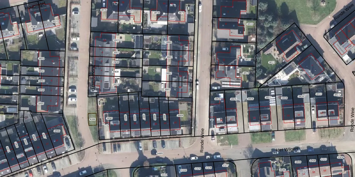 Het perceel waarop Ronde Weie 36 staat heeft een oppervlakte van 252 m². Dit is een middelgroot perceel. De perceeloppervlakte wordt geregistreerd door het Kadaster. Gedetailleerde informatie over de maten van dit perceel kunt u vinden in het rapport Kadastrale kaart met maatvoering van Ronde Weie 36.