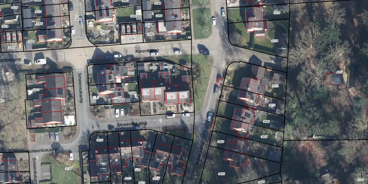 Smeenkskamp 11 is gelegen op kadastraal perceel GSL01A3202. Deze kadastrale aanduiding is uniek en wordt gebruikt door het Kadaster om eigendomsrechten en andere zakelijke rechten vast te leggen. Het perceel maakt onderdeel uit van de kadastrale gemeente Gorssel.