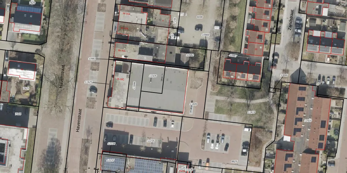 Het perceel waarop Havenstraat 26 staat heeft een oppervlakte van 845 m². Dit is een groot perceel. De perceeloppervlakte wordt geregistreerd door het Kadaster. Gedetailleerde informatie over de maten van dit perceel kunt u vinden in het rapport Kadastrale kaart met maatvoering van Havenstraat 26.