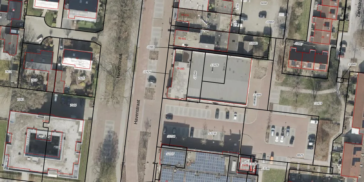Het perceel waarop Havenstraat 28 staat heeft een oppervlakte van 365 m². Dit is een groot perceel. De perceeloppervlakte wordt geregistreerd door het Kadaster. Gedetailleerde informatie over de maten van dit perceel kunt u vinden in het rapport Kadastrale kaart met maatvoering van Havenstraat 28.