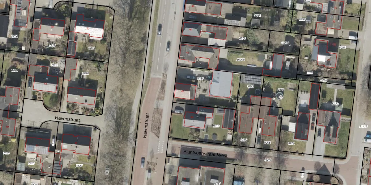 Het perceel waarop Havenstraat 40 staat heeft een oppervlakte van 696 m². Dit is een groot perceel. De perceeloppervlakte wordt geregistreerd door het Kadaster. Gedetailleerde informatie over de maten van dit perceel kunt u vinden in het rapport Kadastrale kaart met maatvoering van Havenstraat 40.