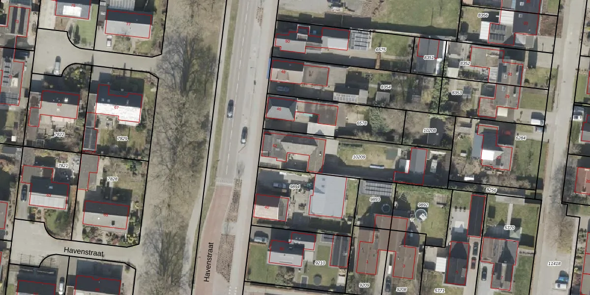 Het perceel waarop Havenstraat 42 staat heeft een oppervlakte van 834 m². Dit is een groot perceel. De perceeloppervlakte wordt geregistreerd door het Kadaster. Gedetailleerde informatie over de maten van dit perceel kunt u vinden in het rapport Kadastrale kaart met maatvoering van Havenstraat 42.
