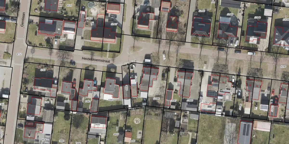 Het perceel waarop Heidebloemstraat 14 staat heeft een oppervlakte van 388 m². Dit is een groot perceel. De perceeloppervlakte wordt geregistreerd door het Kadaster. Gedetailleerde informatie over de maten van dit perceel kunt u vinden in het rapport Kadastrale kaart met maatvoering van Heidebloemstraat 14.