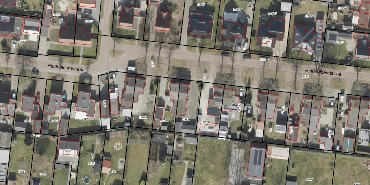 Het perceel waarop Heidebloemstraat 20 staat heeft een oppervlakte van 335 m². Dit is een groot perceel. De perceeloppervlakte wordt geregistreerd door het Kadaster. Gedetailleerde informatie over de maten van dit perceel kunt u vinden in het rapport Kadastrale kaart met maatvoering van Heidebloemstraat 20.