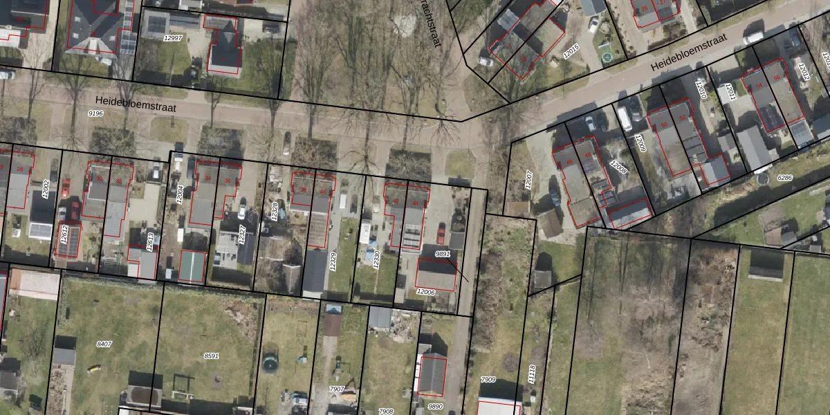 Het perceel waarop Heidebloemstraat 44 staat heeft een oppervlakte van 480 m². Dit is een groot perceel. De perceeloppervlakte wordt geregistreerd door het Kadaster. Gedetailleerde informatie over de maten van dit perceel kunt u vinden in het rapport Kadastrale kaart met maatvoering van Heidebloemstraat 44.