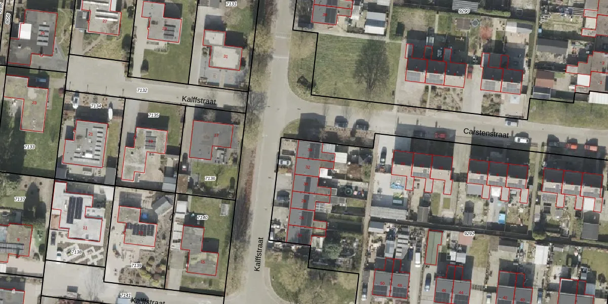Het perceel waarop Kalffstraat 34 staat heeft een oppervlakte van 5940 m². Dit is een zeer groot perceel. De perceeloppervlakte wordt geregistreerd door het Kadaster. Gedetailleerde informatie over de maten van dit perceel kunt u vinden in het rapport Kadastrale kaart met maatvoering van Kalffstraat 34.