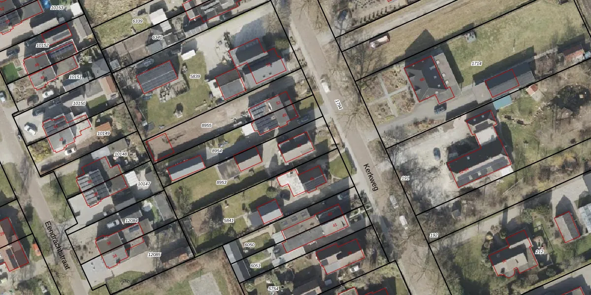 Kerkweg 47 is gelegen op kadastraal perceel EMN00G8953. Deze kadastrale aanduiding is uniek en wordt gebruikt door het Kadaster om eigendomsrechten en andere zakelijke rechten vast te leggen. Het perceel maakt onderdeel uit van de kadastrale gemeente Emmen.