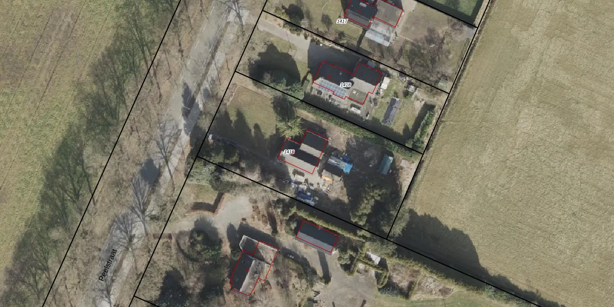 Het perceel waarop Peelstraat 12 staat heeft een oppervlakte van 2035 m². Dit is een zeer groot perceel. De perceeloppervlakte wordt geregistreerd door het Kadaster. Gedetailleerde informatie over de maten van dit perceel kunt u vinden in het rapport Kadastrale kaart met maatvoering van Peelstraat 12.