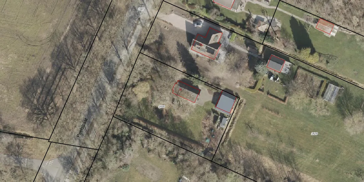Het perceel waarop Peelstraat 30 staat heeft een oppervlakte van 2280 m². Dit is een zeer groot perceel. De perceeloppervlakte wordt geregistreerd door het Kadaster. Gedetailleerde informatie over de maten van dit perceel kunt u vinden in het rapport Kadastrale kaart met maatvoering van Peelstraat 30.
